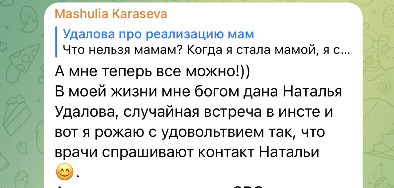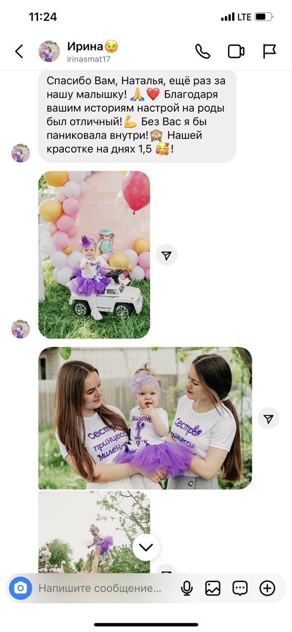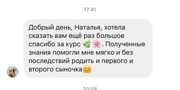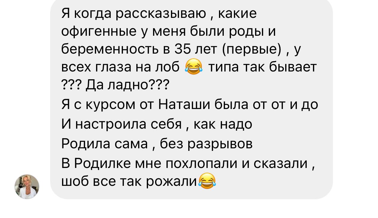 - Обратная связь лично от Натальи Удаловой до самых родов каждый день