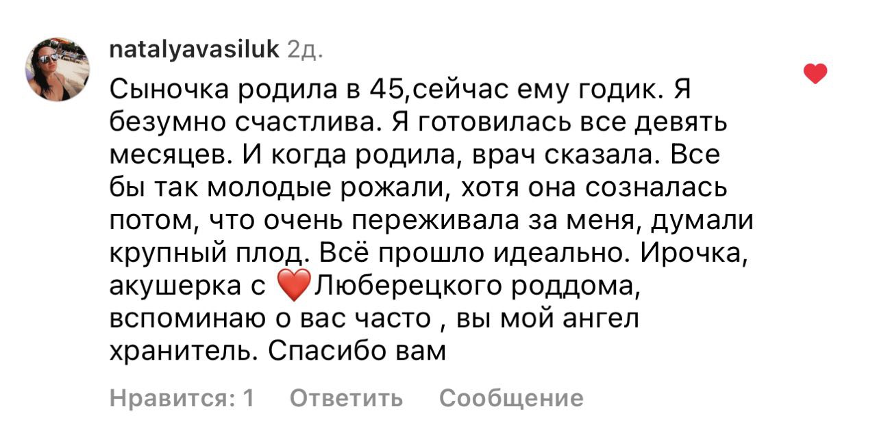 Я пошла на курсы для беременных, стала готовиться и, вопреки всем прогнозам, прекрасно родила сама, без единого медицинского вмешательства. Мои роды были легкими, я до сих пор вспоминаю их с восхищением.